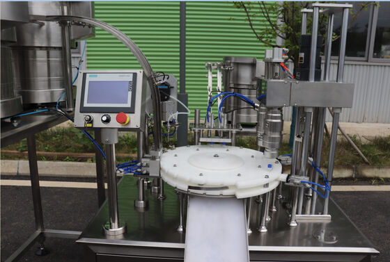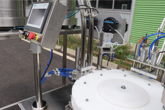 충전 노즐은 이행하기 위해 컨테이너로 뛰어 들어가고 거품이 일기를 회피하기 위해 천천히 상승하고 있습니다.
