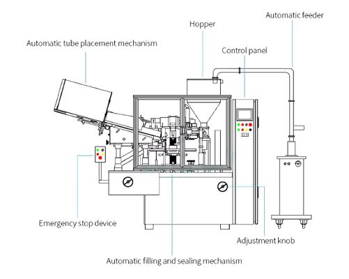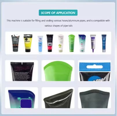 Automatic tube filling and sealing machine is suitable for aluminum and plastic tube filling and sealing.